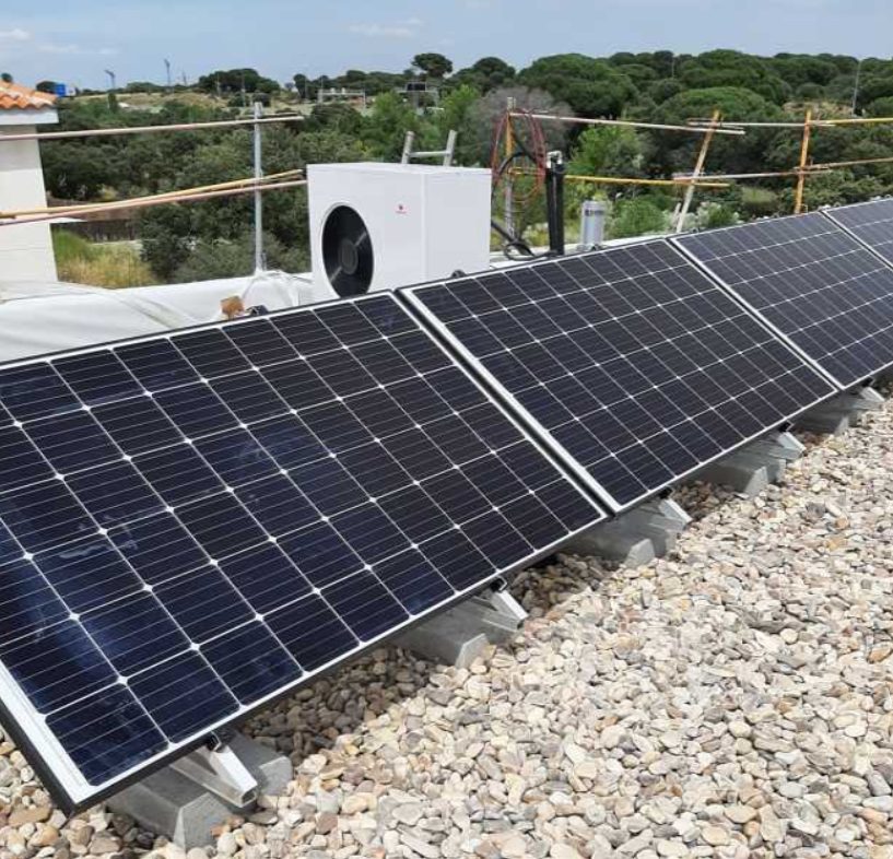 Para maximizar la eficiencia energética y reducir la dependencia de la red eléctrica, se ha instalado un sistema de autoconsumo solar para cubierta plana compuesto por: